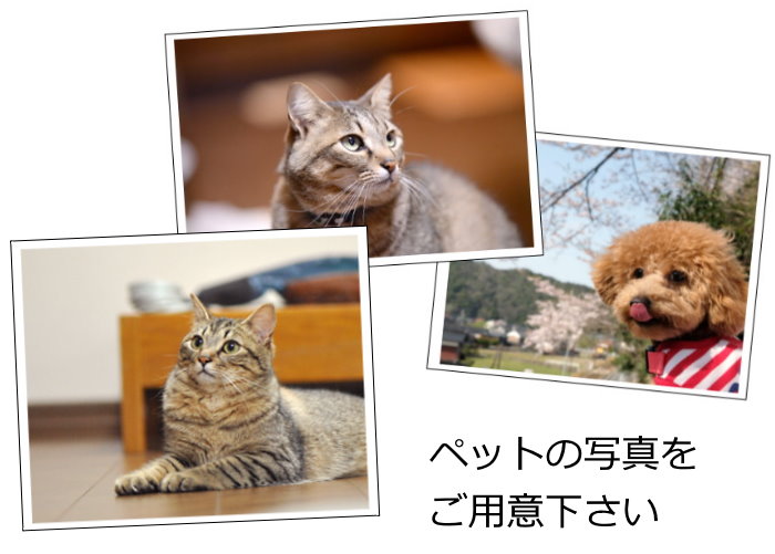 正方形で背景入りなどの制限がありますが、ペットはかわいくデザイン致しますし品質を落とすこともありません。