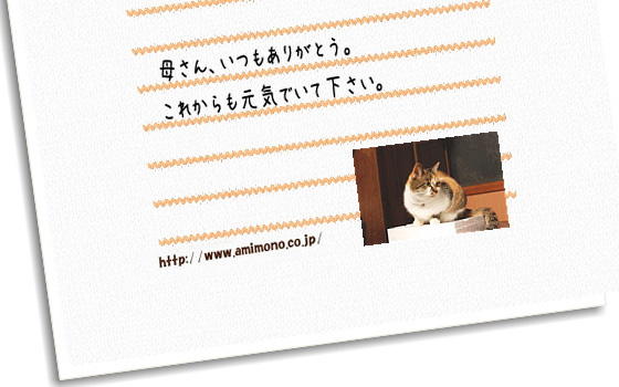 三毛猫、みいの写真つきで、母への手紙を添えた。